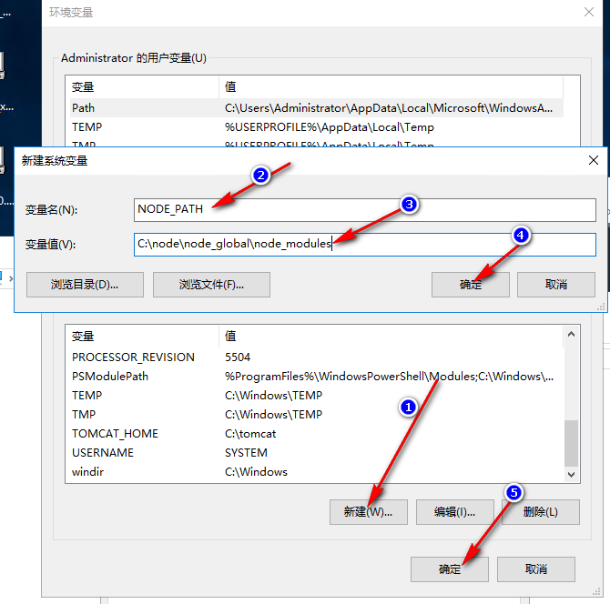 新增系统变量node_path,变量值为f:\NodeJS\node_global\node_modeules